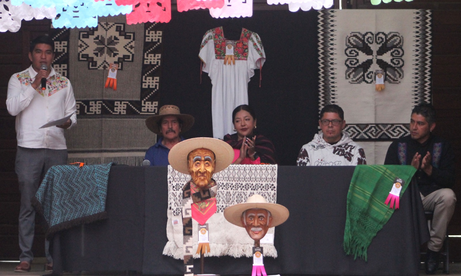 Gabanes de lana, máscaras de madera tallada, rebozos elaborados en telar de cintura, guanengos, blusas o camisas bordados a base de punto de cruz, entre muchas obras de arte más, dieron muestra del ingenio para dar forma a las ideas.