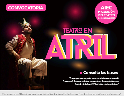 secum atril 1606La Secretaría de Cultura de Michoacán (Secum), a través del Programa de Apoyos a la Cultura, en su vertiente Apoyo a Instituciones Estatales de Cultura 2023 de la Secretaría de Cultura federal, invita a participar en la convocatoria de Teatro en Atril 2023.