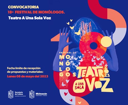 La Secretaría de Cultura federal, a través del Instituto Nacional de Bellas Artes y Literatura (INBAL), mediante la Coordinación Nacional de Teatro, y en colaboración con la Secretaría de Cultura de Michoacán (Secum), convocan a la comunidad teatral nacional a participar en el 18° Festival de Monólogos-Teatro a Una Sola Voz 2023.