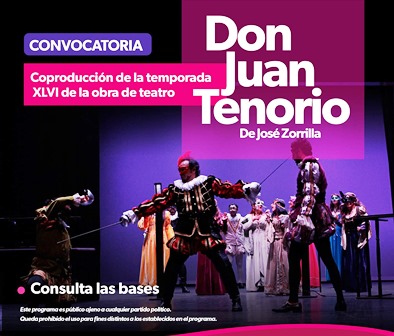 Con la finalidad de continuar con las tradiciones culturales que permiten una cercanía entre las familias michoacanas y el noble arte del teatro, la Secretaría de Cultura de Michoacán (Secum) invita a grupos, compañías o colectivos de teatro a participar en la coproducción de la temporada XLVI de la obra de teatro “Don Juan Tenorio” de José Zorrilla.