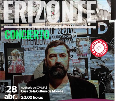 Erizonte se presentará en el auditorio del CMMAS, que se encuentra en las instalaciones de la Casa de la Cultura de Morelia, en su planta alta, ubicada en la avenida Morelos Norte 485, de la colonia Centro de esta capital michoacana.