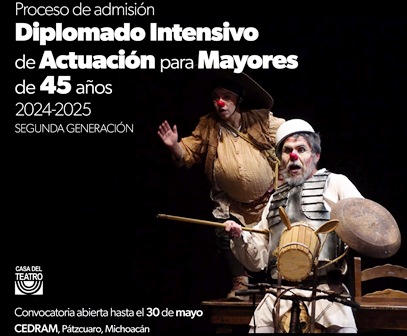 Asimismo, al Diplomado Intensivo de Actuación Dramática para la Profesionalización Teatral Generación 2024-2026, que se llevarán a cabo en el Centro Dramático de Michoacán.