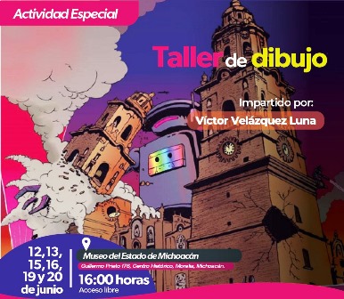 El taller será impartido por Víctor Velázquez Luna, y busca brindar a las y los participantes todos los principios básicos del dibujo, materiales, bases del dibujo técnico, el dinamismo y la caricatura; la teoría del color e imitación, el dibujo a través de la forma, y la extrapolación, acabados y texturas.