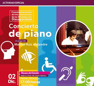 La dependencia estatal recuerda que este recital se lleva a cabo en el marco del Día Internacional de las Personas con Discapacidad, decretado en el año de 1992 por la Asamblea General de las Naciones Unidas. Este tiene el objetivo de promover los derechos y el bienestar de las personas con discapacidades en todos los ámbitos de la sociedad y su desarrollo, así como para concientizar sobre su situación en la vida política, social, económica y cultural.