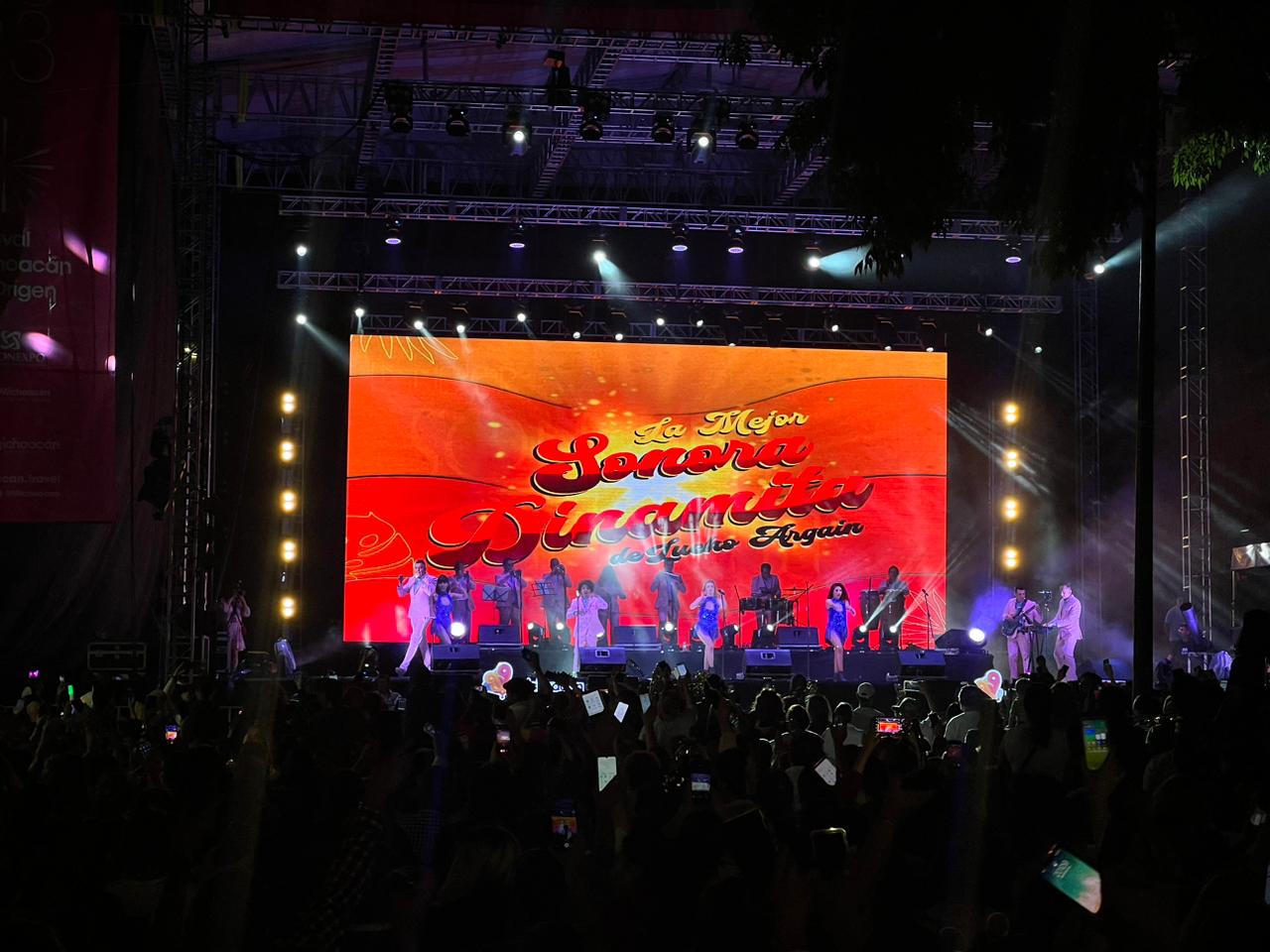 Morelia, Michoacán.- Una verdadera fiesta, baile y ritmo colombiano, se vivió este día en el Festival Michoacán de Origen (FMO), con la presentación de La Mejor Sonora Dinamita de Lucho Argaín.