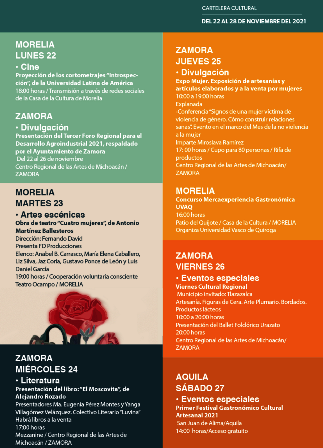 11:00 horas / Transmisión en vivo: Facebook de la Secretaría de Cultura de Michoacán