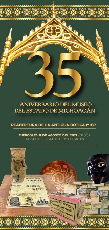 Con una conferencia y un concierto, el Museo del Estado de Michoacán celebrará su 35 aniversario el próximo 11 de agosto a las 6 de la tarde, bajo el auspicio de la Secretaría de Cultura de Michoacán.