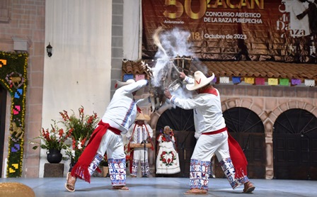 Uruapan, Mich.- En un encuentro único de color y tradición, la secretaria de Cultura de Michoacán, Tamara Sosa Alanís, celebró en Zacán los 50 años del Concurso Artístico de la Raza Purépecha, semillero de las tradiciones de los cuatro pueblos purépecha y punto de encuentro de sus manifestaciones culturales.