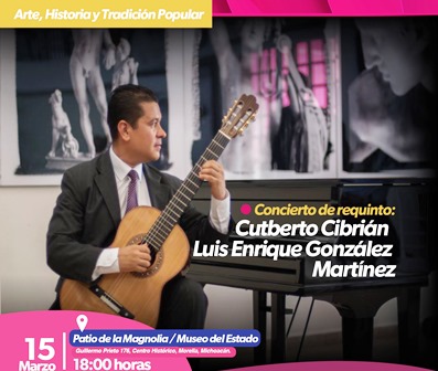 Los músicos Cutberto Cibrián y Luis Enrique González Martínez unirán sus talentos para deleitarnos en un concierto de requinto que se ofrecerá el 15 de marzo en el Museo del Estado, como parte del programa Arte, Historia y Tradición Popular de la Secretaría de Cultura de Michoacán (Secum).