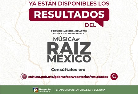 La Secretaría de Cultura del Gobierno de México, a través del proyecto prioritario Chapultepec, Naturaleza y Cultura, la Dirección General de Promoción y Festivales Culturales por conducto de la Dirección del Festival Internacional Cervantino y Circuitos Culturales, en coordinación con las instituciones culturales de los gobiernos de Guanajuato, Colima, Jalisco, Michoacán y la Secretaría de Cultura de la Ciudad de México, informaron los resultados de la convocatoria 2022 Circuito Nacional de Artes Escénicas Chapultepec: Música Raíz México Región Occidente.
