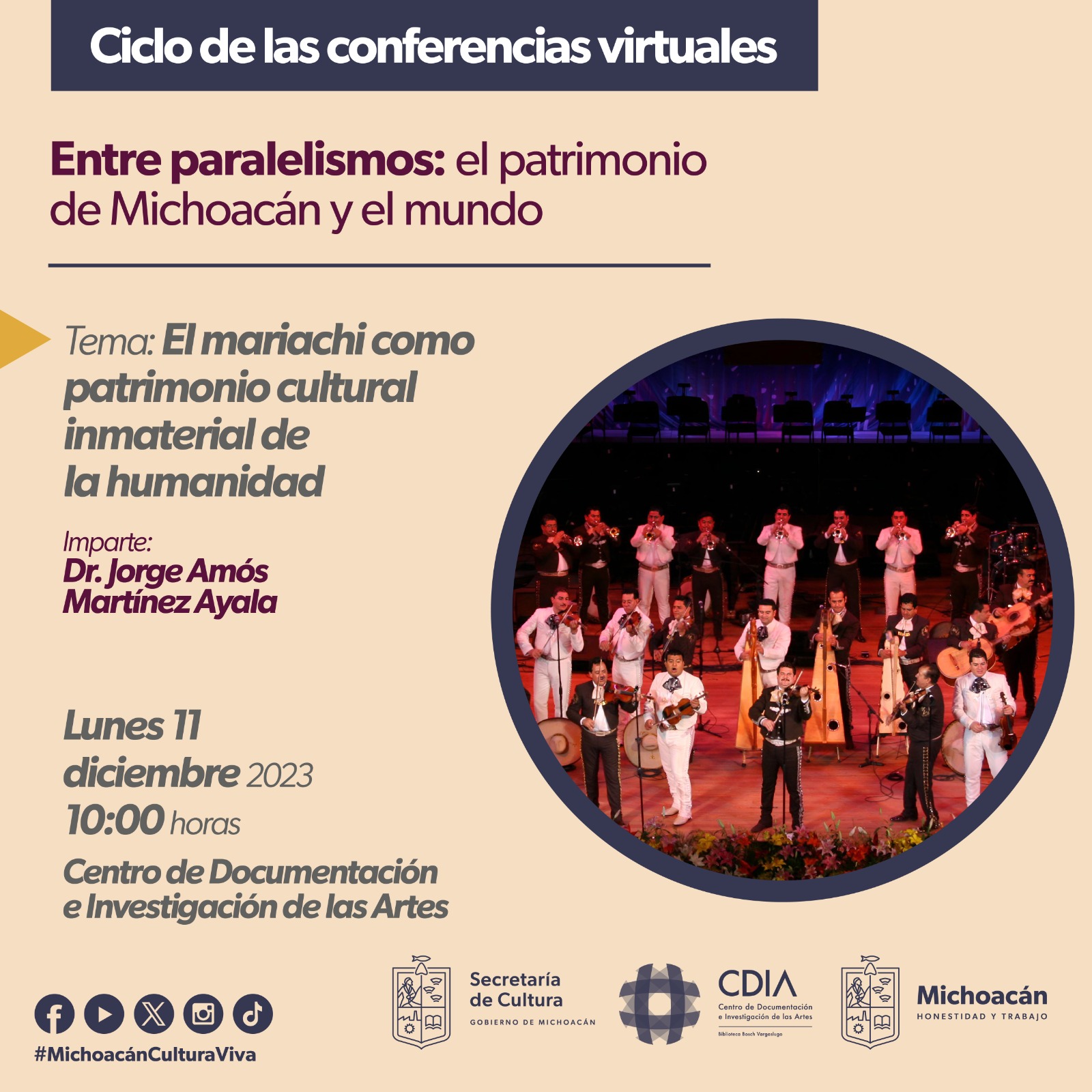Esta conferencia forma parte del Ciclo de Conferencias Virtuales Entre paralelismos: el patrimonio de Michoacán y el mundo, organizado por el Centro de Documentación e Investigación de las Artes. Más allá de celebrar el patrimonio local, invita a reflexionar sobre cómo estas tradiciones se entrelazan con la riqueza cultural mundial.