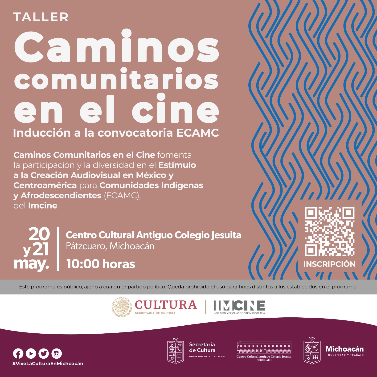 Morelia, Michoacán.- El Instituto Mexicano de Cinematografía (Imcine) y la Secretaría de Cultura del Estado (Secum), convocan a las personas michoacanas de pueblos originarios o afromexicanos, a sumarse al programa Caminos Comunitarios en el Cine, conformado por seis talleres dirigidos a las y los apasionados de la cinematografía.