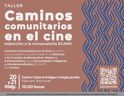secum caminos 0805El Instituto Mexicano de Cinematografía (Imcine) y la Secretaría de Cultura del Estado (Secum), convocan a las personas michoacanas de pueblos originarios o afromexicanos, a sumarse al programa Caminos Comunitarios en el Cine, conformado por seis talleres dirigidos a las y los apasionados de la cinematografía.