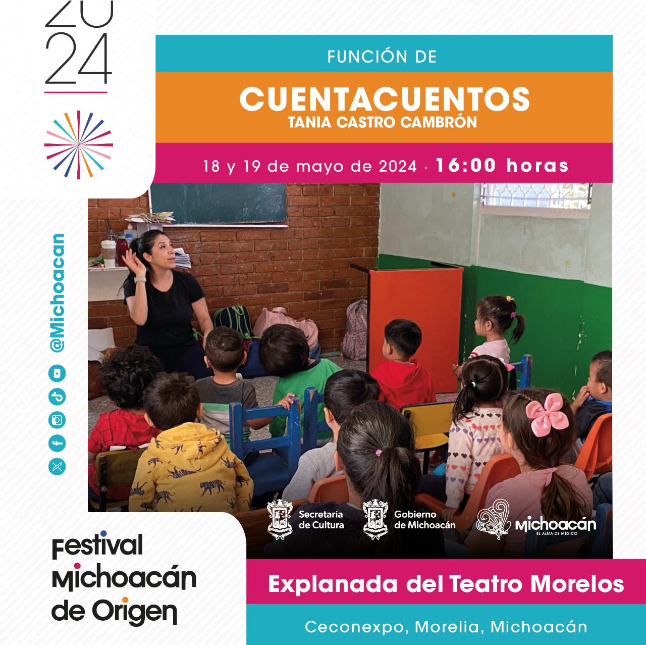 Morelia, Michoacán.- Disfruta en grande el último día del Festival Michoacán de Origen (FMO), donde habrá cuentacuentos para niñas y niños y un concierto de sonidos únicos y vibrantes con la presentación de 11 Project folk-fusión. La cita es este domingo a partir de las 16:00 horas en la explanada del Teatro Morelos.