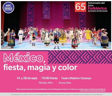 La Secretaría de Cultura de Michoacán (Secum) anuncia la última presentación del Ballet Folklórico del Estado de Michoacán, en el marco de su 65 aniversario, el próximo el jueves 28 de septiembre a las 17:00 horas en el Teatro Melchor Ocampo, con acceso libre para todo el público.