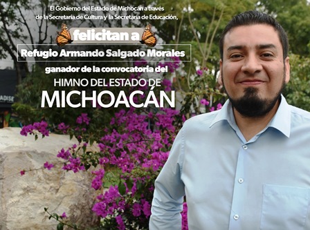 Originario de Uruapan, pero avecindado en Morelia, y bajo el seudónimo de Tumbi Karari, Refugio Armando Salgado Morales resultó ganador de la convocatoria Creación de la letra del himno oficial del Estado de Michoacán.