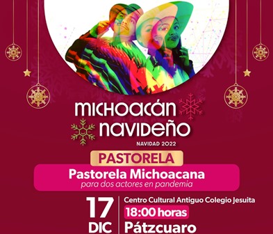 Ese mismo día, pero en el Centro Cultural Antiguo Colegio Jesuita en Pátzcuaro, a las 18:00 horas, se presenta la «Pastorela michoacana para dos actores en pandemia: Cuando la tecnología pone en riesgo la Navidad», como parte de los resultados del Taller «Ven y actúa en una pastorela», a cargo de Natalia Goded.
