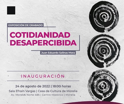La Casa de la Cultura de Morelia recibe la exposición “Cotidianidad desapercibida” de Juan Eduardo Salinas Mora, misma que será inaugurada el próximo 24 de agosto a las 18:00 horas, en la sala Efraín Vargas.