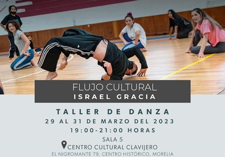 El taller de danza contemporánea Flujo Corporal estará a cargo del maestro Israel García Beltrán y está enfocado en explorar el cuerpo a través de un entrenamiento basado en técnicas de movimiento corporal contemporáneas, dirigido a bailarinas y bailarines de diversos géneros de la danza y personas que tengan un acercamiento con la investigación del movimiento del cuerpo.