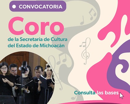 Con el objetivo de formar una agrupación coral de alto nivel musical y artístico, que represente a la entidad en diferentes foros locales y nacionales, la Secretaría de Cultura de Michoacán (Secum), a través del Departamento de Música, abre su convocatoria para formar parte del Coro de la dependencia.
