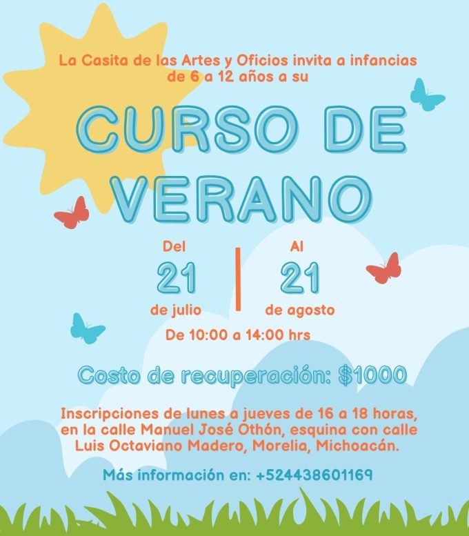 En estas vacaciones, la Casa de las Artes y Oficios de Santa María de Guido invita a pequeñas y pequeños de 6 a 12 años a disfrutar de un programa especial de talleres en su Curso de Verano, que se estará llevando a cabo del 21 de julio al 21 de agosto en su sede actual en Morelia.