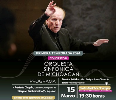 La Orquesta Sinfónica de Michoacán (Osidem) ya está lista para su octavo concierto de la primera temporada 2024 que presentará este 15 de marzo a las 19:30 horas en el Teatro Melchor Ocampo.