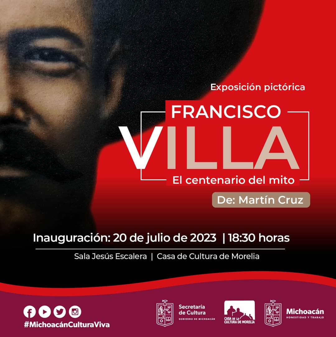 Morelia, Michoacán, 16 de julio de 2023.- Francisco Villa ha sido un personaje mítico, cuyo impacto cultural ha permanecido arraigado en la sociedad mexicana desde hace ya un siglo. También es la figura central del mural tríptico del artista visual Martín Cruz, que podrá visitarse a partir de las 18:30 horas del 20 de julio, fecha de su inauguración, en la Sala Jesús Escalera, de la Casa de Cultura de Morelia, gracias al apoyo de la Secretaría de Cultura de Michoacán (Secum).