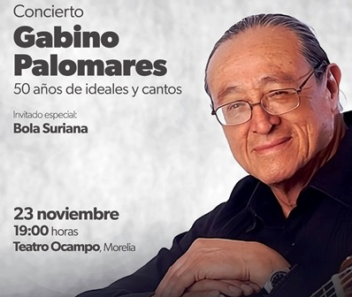 Miembro de la generación del llamado Nuevo Canto y con más de 14 discos grabados, Gabino Palomares celebrará cinco décadas de trayectoria en el Teatro Melchor Ocampo, el 23 de noviembre a las 19:00 horas.