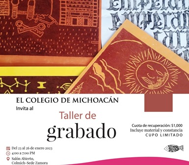 El taller contará con un horario de las 16:00 a 19:00 horas en el Colegio de Michoacán (COLMICH), institución que emprende este proyecto derivado de la Red de Estudios de Espacios Carcelarios, como parte de sus acuerdos de colaboración en la formación y divulgación artística cultural.