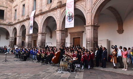 La Secretaría de Cultura de Michoacán (Secum), abre sus puertas a la Nueva Escuela Mexicana con la presentación del concierto artístico de coros y rondas que realizaron más de 600 niñas y niños, en el patio principal del Centro Cultural Clavijero.