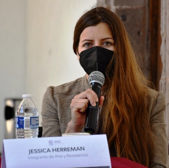 Erick Villalón, Jessica Herreman y Fernando Llanos, integrantes de Arte y Resistencia, compartieron que su iniciativa pretende incluir a la comunidad en la creación de las piezas y usar el arte para vincular nuevas formas de participación que genere lazos entre los espectadores.