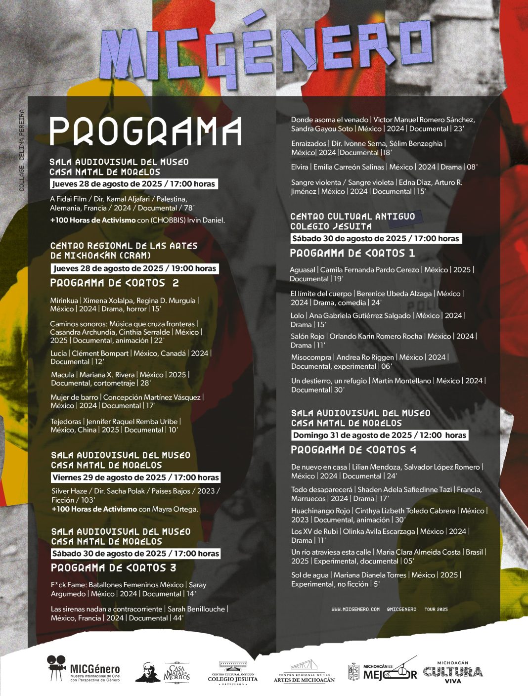 Morelia, Michoacán.- La Secretaría de Cultura de Michoacán (Secum) invita al público a la 14 edición de la Muestra Internacional de Cine con Perspectiva de Género (MICGénero), un encuentro que reunirá cine, debate y activismo para reflexionar sobre feminismos, estudios de género y derechos humanos.