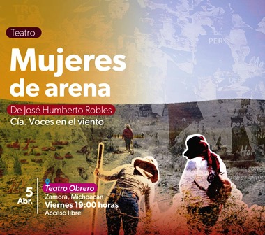 La Secretaría de Cultura de Michoacán (Secum) invita a la población de Zamora y sus alrededores a la obra de teatro Mujeres de arena, que se presentará el viernes 5 de abril a las 19:00 horas en el Teatro Obrero, con acceso gratuito.