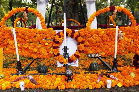 El Gobierno de Michoacán, a través de la Secretaría de Cultura del Estado (Secum) y el Ceconexpo, invita a la ciudadanía, turistas y visitantes a disfrutar de estos altares con motivo de los cuatro elementos de la tradición de la Noche de Muertos: agua, aire, fuego y tierra, a cargo de la artesana de Santa Fe de la Laguna, Berenice Flores Manríquez, y un equipo de 12 personas.
