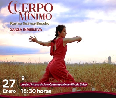 Con apoyo de la Secretaría de Cultura de Michoacán (Secum), la artista México-alemana Karina Suárez-Bosche impartirá una función de danza inmersiva «Cuerpo mínimo”, en el Museo de Arte Contemporáneo “Alfredo Zalce”, el próximo 27 de enero.