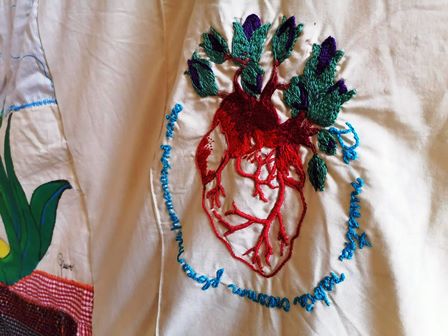 Cada pieza es única, ya que el lenguaje visual que utilizan estas mujeres depende del país del que proceden y de cómo eligen interpretar estos temas. Los textiles se exponen pieza por pieza y unifican país por país para hacer una gran manta de sanación y curación tanto para las mujeres como para sus hijas y sus familias.