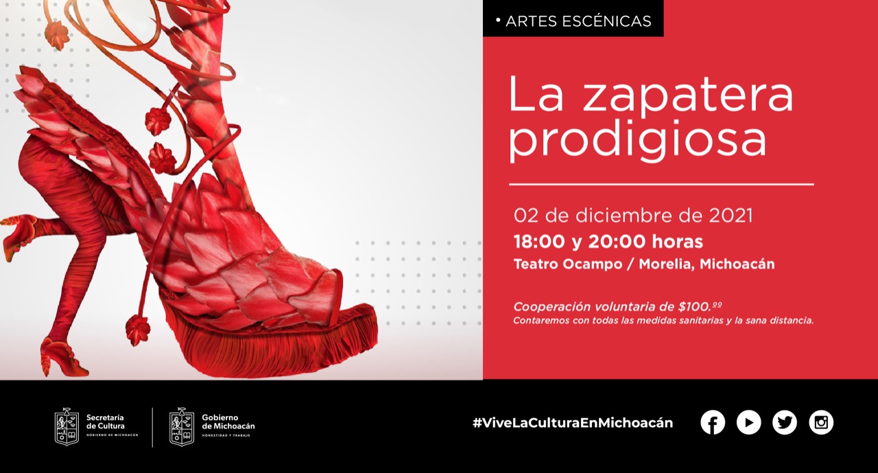 Morelia, Michoacán.- Espacio escénico presentará la obra “La zapatera prodigiosa”, de Federico García Lorca, el 02 de diciembre, con funciones a las 18:00 y 20:00 horas en el Teatro Ocampo.
