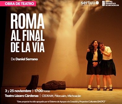 Enfrentar al temor de alcanzar lo que más se desea, y la paradoja de dejar pasar la felicidad por pensar que se encuentra en otra parte, es el mensaje de la obra de teatro Roma al final de la vía, que se presentará los días 3 y 25 de noviembre en el Centro Dramático de Michoacán (Cedram), con el respaldo de la Secretaría de Cultura de Michoacán (Secum).