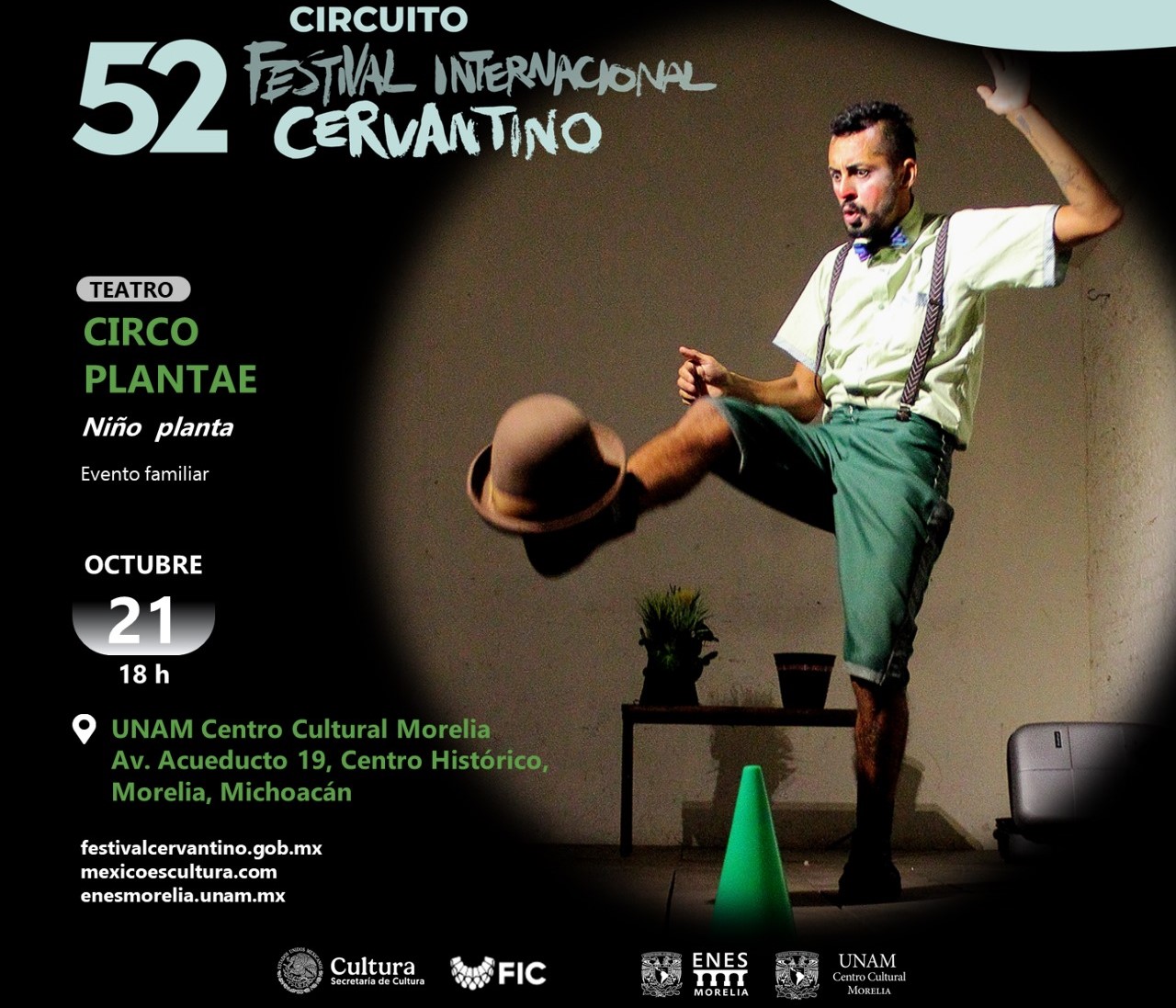 El UNAM Centro Cultural Morelia, de la Escuela Nacional de Estudios Superiores (ENES Morelia UNAM), será sede por segundo año consecutivo del Circuito del “52 Festival Internacional Cervantino” durante el mes de octubre con actividades totalmente gratuitas.
