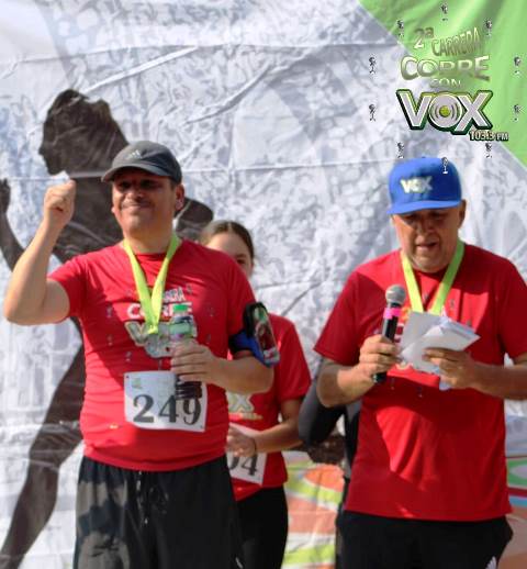 Con tiempo de 26 minuto 23 segundos y 32’06”, los atletas Alejandro Sánchez Viveros y Daniela Alejandra Alonso, se convirtieron en los máximos ganadores de la Segunda Edición de la Carrera “Corre con VOX” que se llevó a efecto esta mañana en el Centro Histórico de Morelia con motivo del décimo aniversario de la estación radiofónica, así como apoyar a diez destacados atletas michoacanos, a quienes se les entregó lo recaudado por la inscripción cercana a los 800 competidores.