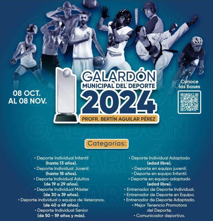 Con el fin de reconocer a los atletas destacados de nuestra sociedad, el Instituto Municipal de Cultura Física y Deporte (IMCUFIDE) cerró exitosamente la recepción de propuestas al Galardón Municipal de Deporte “Profesor Bertín Aguilar Pérez”, las cuales serán evaluadas por el jurado calificador para definir a las y los ganadores de las 15 categorías.