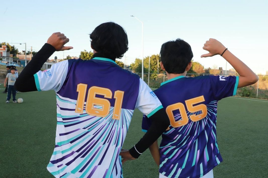 Con el firme compromiso de impulsar el desarrollo integral de las niñas, niños y adolescentes en zonas vulnerables de Morelia, el Gobierno del Presidente Municipal, Alfonso Martínez Alcázar, a través del DIF Morelia, encabezado por la Presidenta Honoraria, Paola Delgadillo Hernández, entregó 134 uniformes a jugadores del programa de fútbol “Estrellas del Mañana” en las sedes de Villas de Oriente y Misión del Valle.