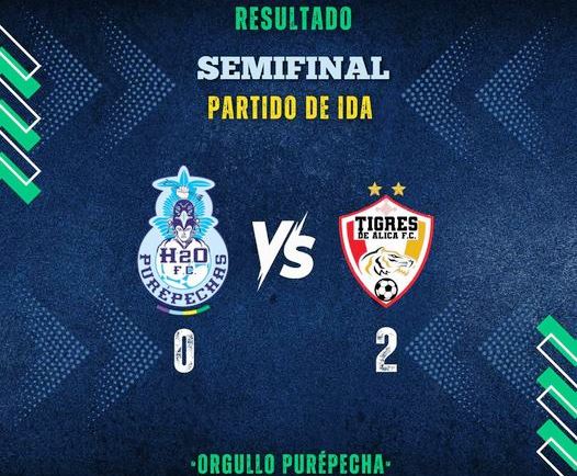 El equipo de H2O Purépechas desaprovechó su condición de local en el juego de Ida de las Semifinales de la Zona B del balompié de la Liga TDP, tras sufrir tropezón de 0-2 ante Tigres de Álica F.C. en duelo que se celebró sobre la cancha José Calderón de la Unidad Deportiva Cuauhtémoc (UDC) de la capital michoacana.