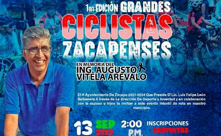 Como un reconocimiento a su destacada trayectoria como ciclista que representó a México a nivel internacional, así como por la promoción y fomento del ciclismo entre los niños y jóvenes, este miércoles se llevará a cabo en la ciudad de Zacapu, Michoacán, la Carrera Infantil y Juvenil de la Primera Edición “Grandes Ciclistas Zacapenses” en memoria de Augusto Vitela Arévalo.