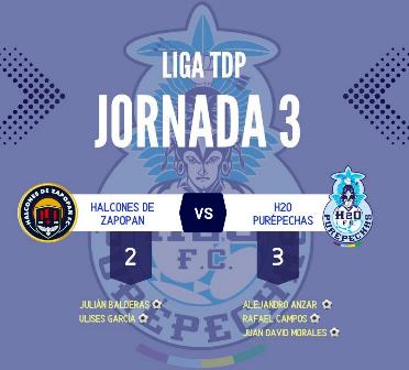 En un apasionante partido celebrado sobre la cancha de la Unidad Deportiva Hermanos López Rayón de Uruapan, la escuadra de H2O Purépechas conquistó su primer triunfo de visitante al vencer en gran remontada 3-2 a los Halcones de Zapopan en duelo correspondiente a la tercera jornada del balompié de la Liga TDP MX.
