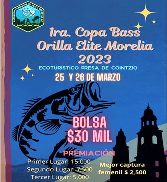 La Comisión de Pesca del Estado de Michoacán (Compesca), encabezada por Ramón Hernández Orozco, invita los días 25 y 26 de marzo al primer torneo de pesca deportiva Copa Bass Elite Morelia, en la zona ecoturística de la presa de Cointzio.