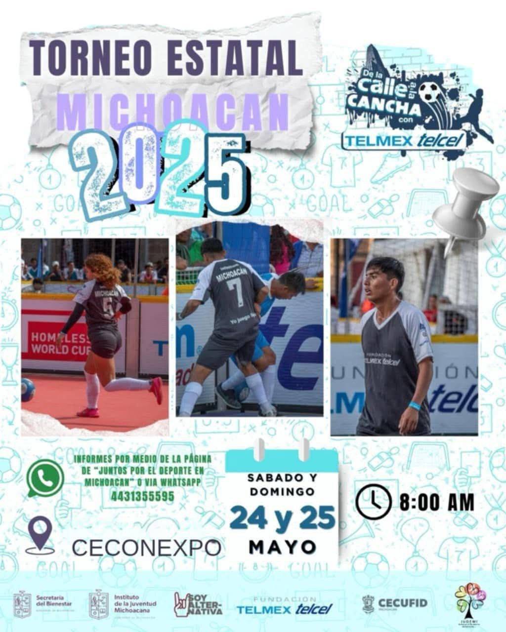 Es importante destacar que este torneo se realiza en colaboración con Fundación Telmex-Telcel, Asociación Juntos por el Deporte Michoacán (Judemi), Secretaría de Educación del Estado (SEE), la Comisión Estatal de Cultura Física y Deporte (Cecufid) y el Instituto de la Juventud Michoacana (Ijumich), y se realizará los días sábado 24 y domingo 25 de mayo y se llevará a cabo en el estacionamiento del Centro de Convenciones y Exposiciones de Morelia (Ceconexpo).
