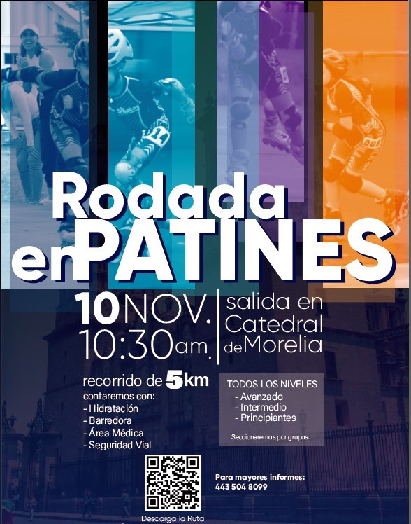 Con la finalidad de difundir la activación física entre la sociedad y así captar a potenciales talentos, el Gobierno de Morelia, a través del Instituto Municipal de Cultura Física y Deporte (IMCUFIDE), realizará la Rodada en Patines, el próximo domingo 10 de noviembre en punto de las 10:30 horas con punto de salida frente a la Catedral.