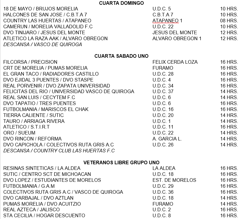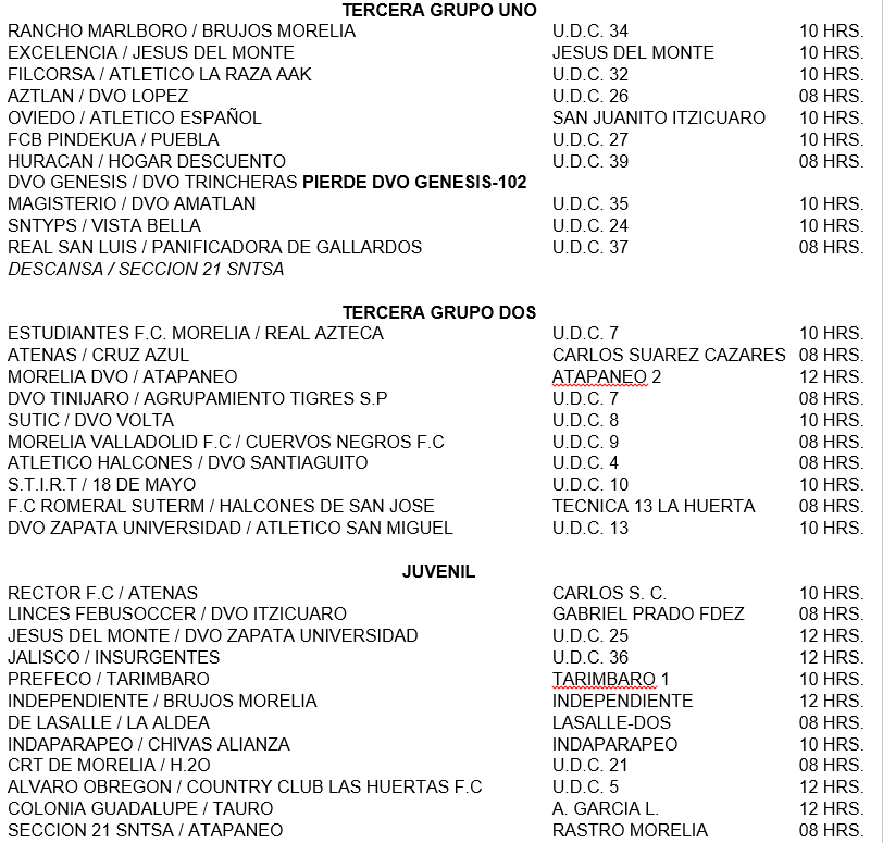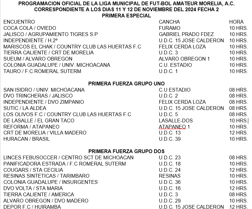 PROGRAMACION OFICIAL DE LA LIGA MUNICIPAL DE FUT-BOL AMATEUR MORELIA, A.C. Deportes 10 de noviembre de 2023 Especial Respuesta Cuota FacebookTwitterWhatsAppEmailTelegram Noticias MAS VISTAS Morelia Al gobernador no le han informado sobre bazares en Morelia: Alfonso Martínez Artemio Nava - 30 de agosto de 2022 Seguridad Accidente de camión trocero deja un adulto mayor herido en la carretera Zitácuaro-Aputzio de Juárez Artemio Nava - 18 de noviembre de 2025 Estado BENEFICIA A 45 MUNICIPIOS MICHOACANOS CON LA APROBACIÓN DE 115 OBRAS: SEMIGRANTE lili - 2 de octubre de 2017 Seguridad Tráiler cargado con rollos de acero se incendia tras accidente en la autopista Siglo XXI Artemio Nava - 18 de noviembre de 2025 Seguridad Fatal choque de frente en Zacapu deja una persona sin vida Artemio Nava - 18 de noviembre de 2025 Estado Los obispos del país «no podemos ser indiferentes» ante realidad de asesinatos, secuestros, desplazados, inseguridad y delincuencia organizada Artemio Nava - 18 de noviembre de 2025 Estado Comienzan a darse de alta en el ISSSTE 5 mil docentes jubilados de Michoacán Artemio Nava - 18 de mayo de 2023 Estado Firman convenio de colaboración la CEDH y la Junta de Asistencia Privada Artemio Nava - 18 de noviembre de 2025 Economía Aumenta 0.2 % el volumen de la producción manufacturera, en septiembre Artemio Nava - 18 de noviembre de 2025 Educación Profesora de la UMSNH, elegida por su trabajo entre aproximadamente 17 mil investigadores en el ranking Research.com. Artemio Nava - 18 de noviembre de 2025 Noticias Relacionadas Seguridad Hombre muere en zona cerril de Purépero, sufrió una aparatosa caída y un escopetazo 18 de noviembre de 2025 Seguridad Tráiler cargado con rollos de acero se incendia tras accidente en la autopista Siglo XXI 18 de noviembre de 2025 Seguridad Accidente de camión trocero deja un adulto mayor herido en la carretera Zitácuaro-Aputzio de Juárez 18 de noviembre de 2025 Seguridad Fatal choque de frente en Zacapu deja una persona sin vida 18 de noviembre de 2025