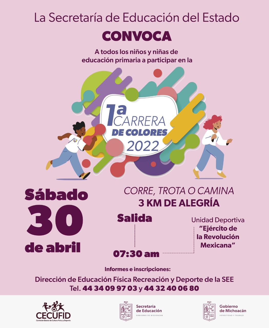 La Secretaría de Educación del Estado invita a todos los alumnos de nivel primaria a correr, trotar o caminar en la Primera Carrera de Colores.